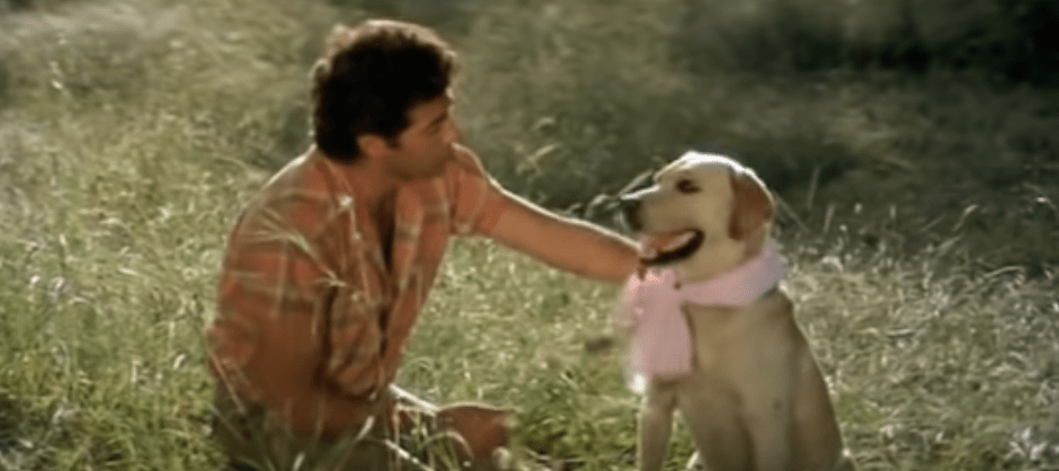 Betaab surpassed the poor boy and rich girl love story cliché with some great music, a charming lead pair, and an adorable sidekick: Buzo, the dog. As farm boy Sunny’s best bud, this lovable Labrador was a great draw as he ran errands with him, played, swam, and enjoyed the country life. Soon Sunny reunites with his childhood sweetheart Roma and Buzo becomes their merry assistant – playing and running around with them. When the villains attack Sunny and separate him from Roma, Buzo calls for help and saves his injured buddy. Later on, he sneaks into the enemy camp to deliver Sunny’s message to Roma. Buzo offers an ultimate sign of his love and unwavering loyalty when he fights off Roma’s kidnappers and is hit by a bullet. An enraged Sunny thrashes the baddies and rescues Roma. The film ends with the lovers uniting and our brave boy Buzo, all bandaged up, joining his friends.